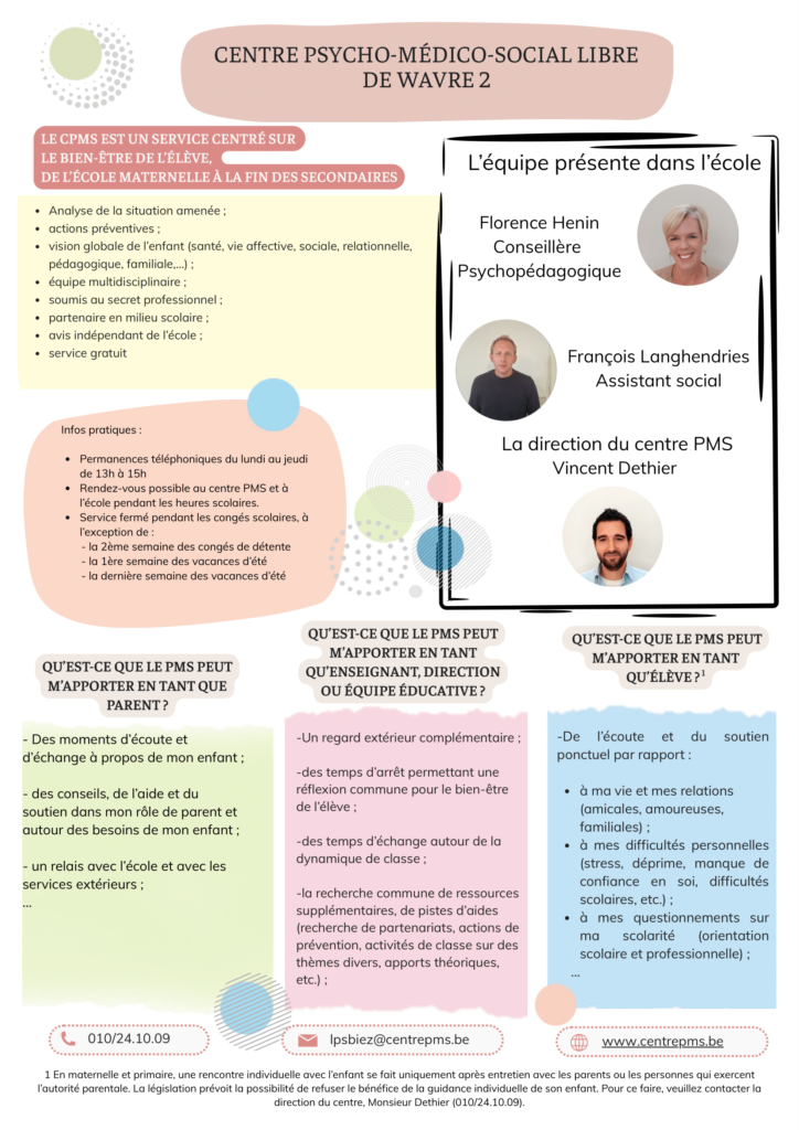 Le Centre Psycho-Médico-Social libre de Wavre 2 assure la guidance de tous les enfants.
